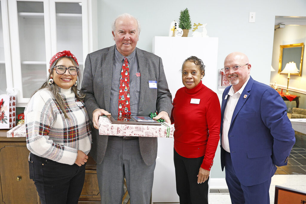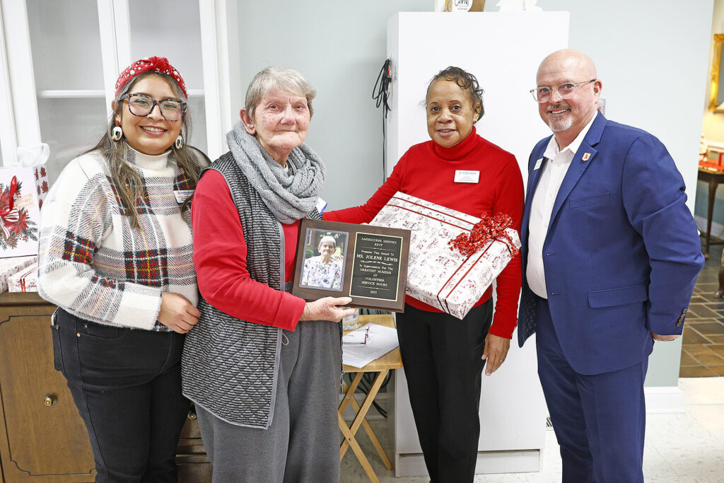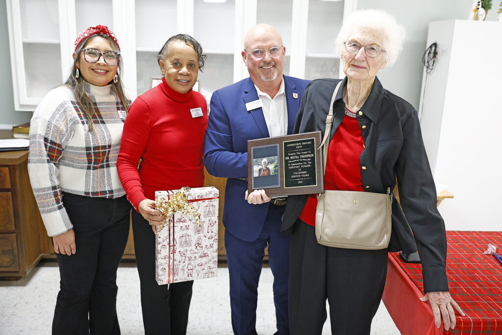 English presented a plaque award and gift to Jolene Lewis for the female RSVP volunteer with the most service hours, and he presented a plaque award and gift to Van Pierce for the male RSVP volunteer with the most volunteer hours. He also presented an award and gift to Retha Thompson for 29 years of volunteer service, the most years on record.